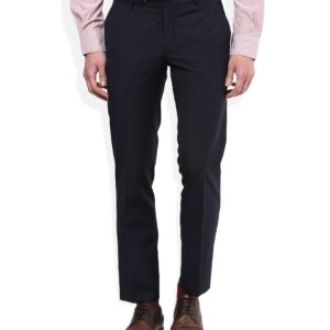 John Players Navy Blue Solid Pleated Front Trousers